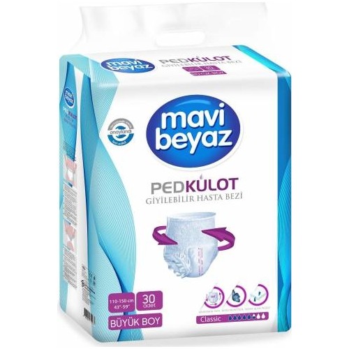 Mavi Beyaz Ped Emici Külot Hasta Bezi Large Büyük 30 Adet